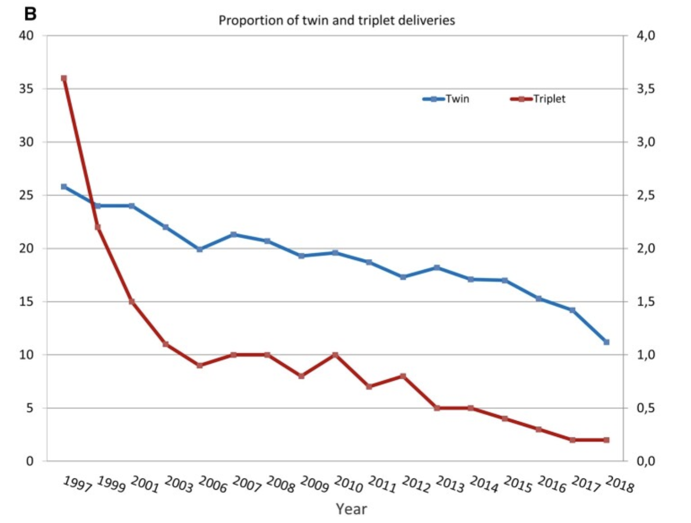 Ein gutes Beispiel für die Qualitätskontrolle sind die gesammelten Daten über den Transfer mehrerer Embryonen und die Anzahl der Mehrlingsschwangerschaften, die Risikoschwangerschaften darstellen. Basierend auf Registrierungsdaten haben die meisten europäischen Länder und Gesellschaften die Anzahl der zu transferierenden Embryonen reguliert, wodurch die durch ART erzeugten Mehrlingsschwangerschaften ebenfalls zurückgegangen sind.