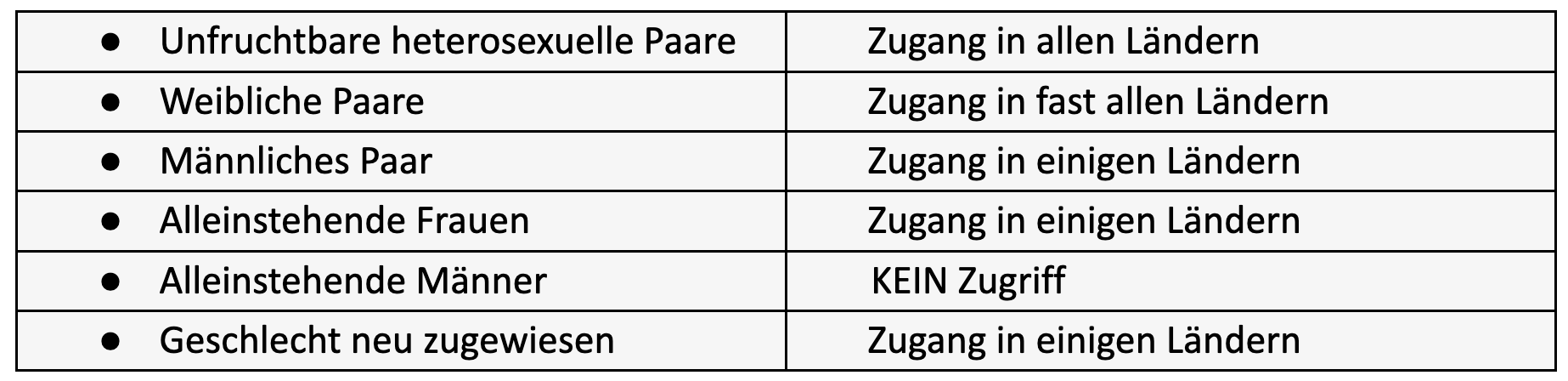 -> Unterschiedliche Regelungen führen zu „Fertilitätstourismus“.